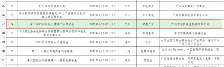 經(jīng)申報及專家評審,由廣州市億帆展覽服務(wù)有限公司主辦的第31屆廣州國際大健康產(chǎn)業(yè)博覽會(簡稱“IHE China廣州國際大健康展”)成功列入2022年“粵貿(mào)全國”系列展會。
