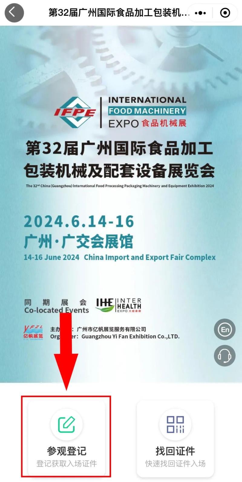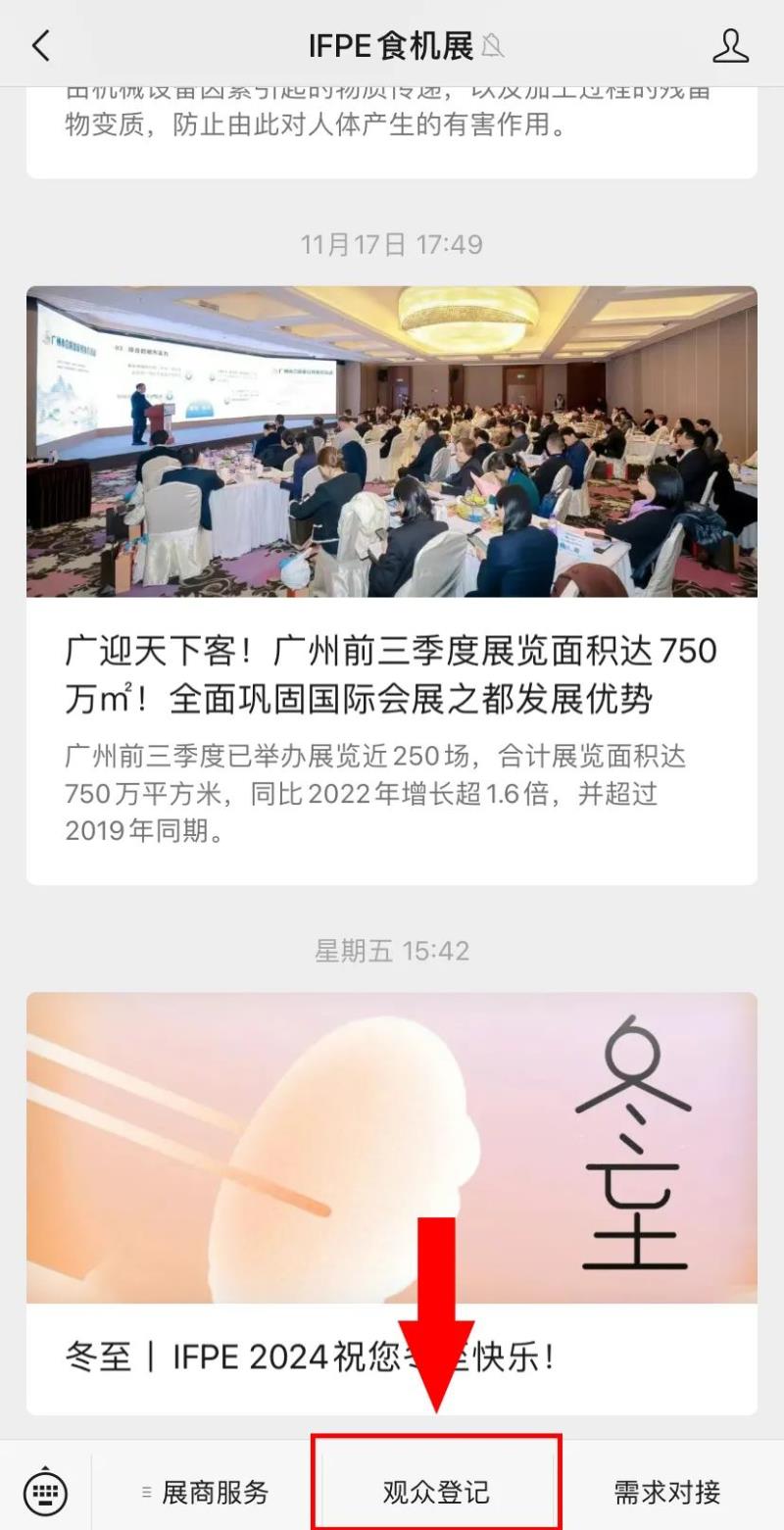 01?關注官方微信公眾號步驟1:關注官方公眾號“IFPE食機展” |