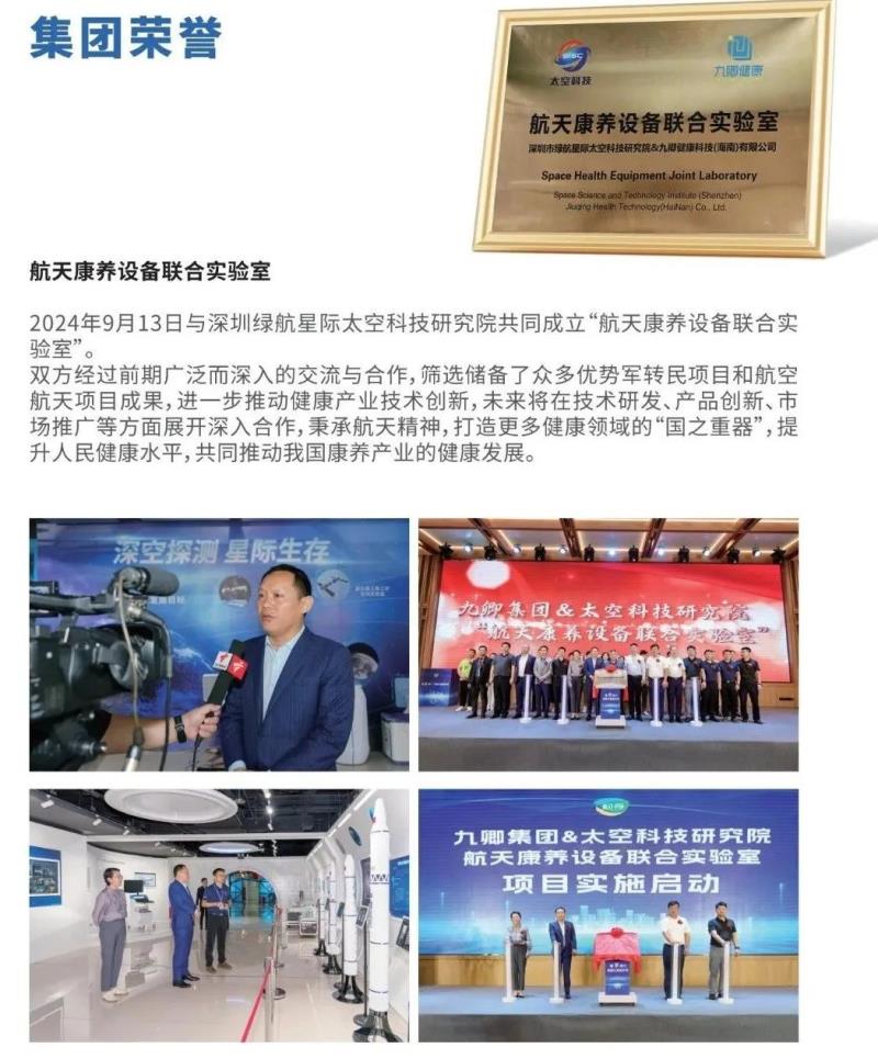 九卿集團貫徹“利他” 思想,依托中華養生文化精粹,融合世界領銜康養科技,以企業特有的健康養生理念為指導,創造性地提供 “門店設備 + 客用產品 + 健康服務” 結合的生命維養整體解決方案。通過科學手段,改善 “陽光、空氣、水、營養、睡眠” 五大生命要素,滿足人們多元化、個性化的健康需求。