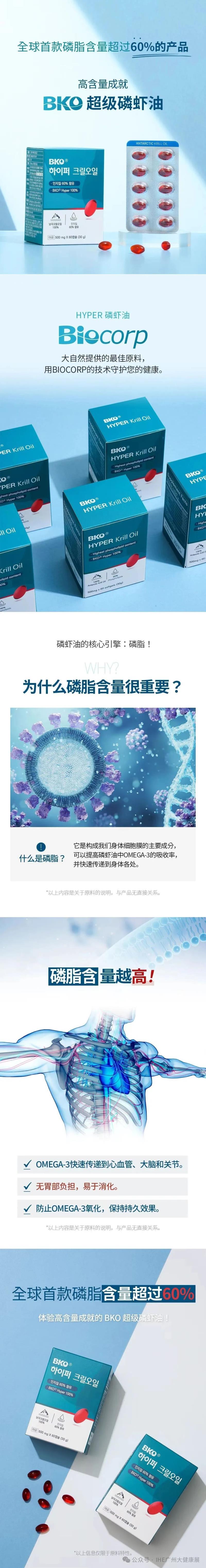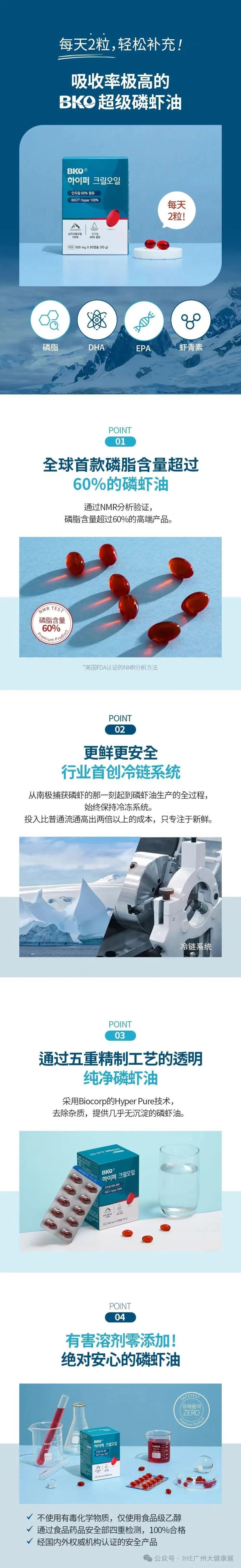 韓國BKO南極磷蝦油是從純凈南極海域的磷蝦中提取的高品質Omega-3營養補充劑,富含磷脂型Omega-3(EPA & DHA)、蝦青素(天然抗氧化劑)和膽堿,具有比普通魚油更高的吸收率和生物利用度,是國際公認的高端健康食品。