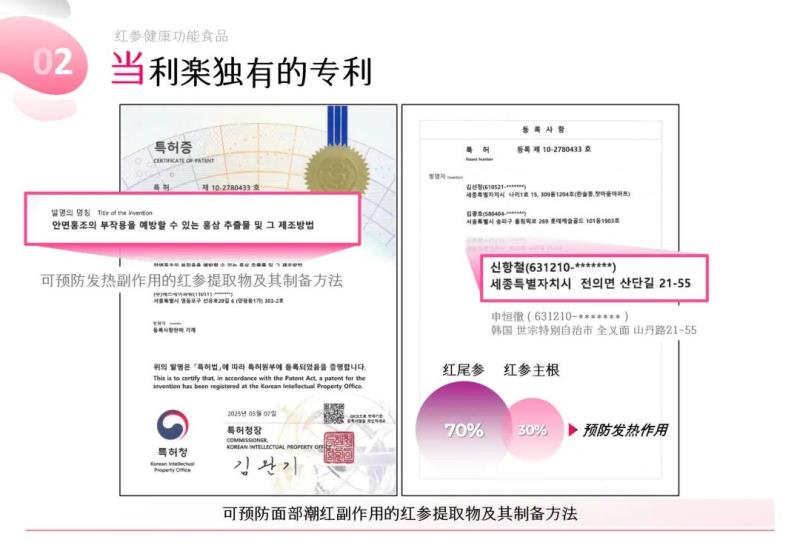 高麗人參在傳統韓醫中被視為“溫熱性”藥材,過量食用可能引起“上火”反應,如臉部潮紅、心煩等。為避免這一副作用,當利楽以微寒性的紅參尾根為主要原料,占比70%,輔以30%的微溫性紅參主根。這種陰陽協調的配比既確保了紅參充足的有效成分,又避免了服用紅參常見的燥熱副作用。與一般主要使用紅參主根的產品相比,當利楽的配方更加溫和,敏感體質人群也可以安心服用。