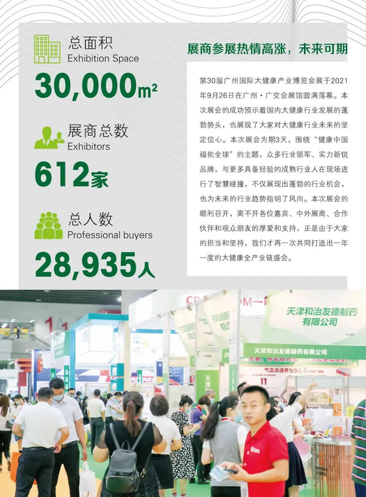 在2021年這一機遇與挑戰并存的特殊時期,第30屆廣州國際大健康產業博覽會(IHE China)于9月24-26日在廣州·廣交會展館成功舉辦。展會以“健康中國,福佑全球”為主題,吸引了來自國內外眾多領軍企業參與展出,在確保嚴格落實防疫措施的同時,為觀眾呈現了一場大健康行業最受期待的年度盛宴。
