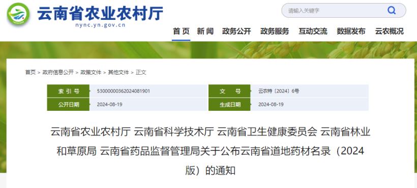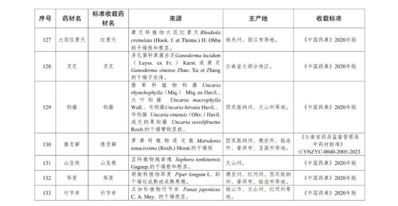 近日,為推動云藥產業高質量發展,云南省農業農村廳等部門共同發布《云南省道地藥材名錄(2024版)的通知》。《通知》共收錄了三七、滇重樓、燈盞花等十大云藥,以及滇黃精、紅花、草果等146種特產藥材。
